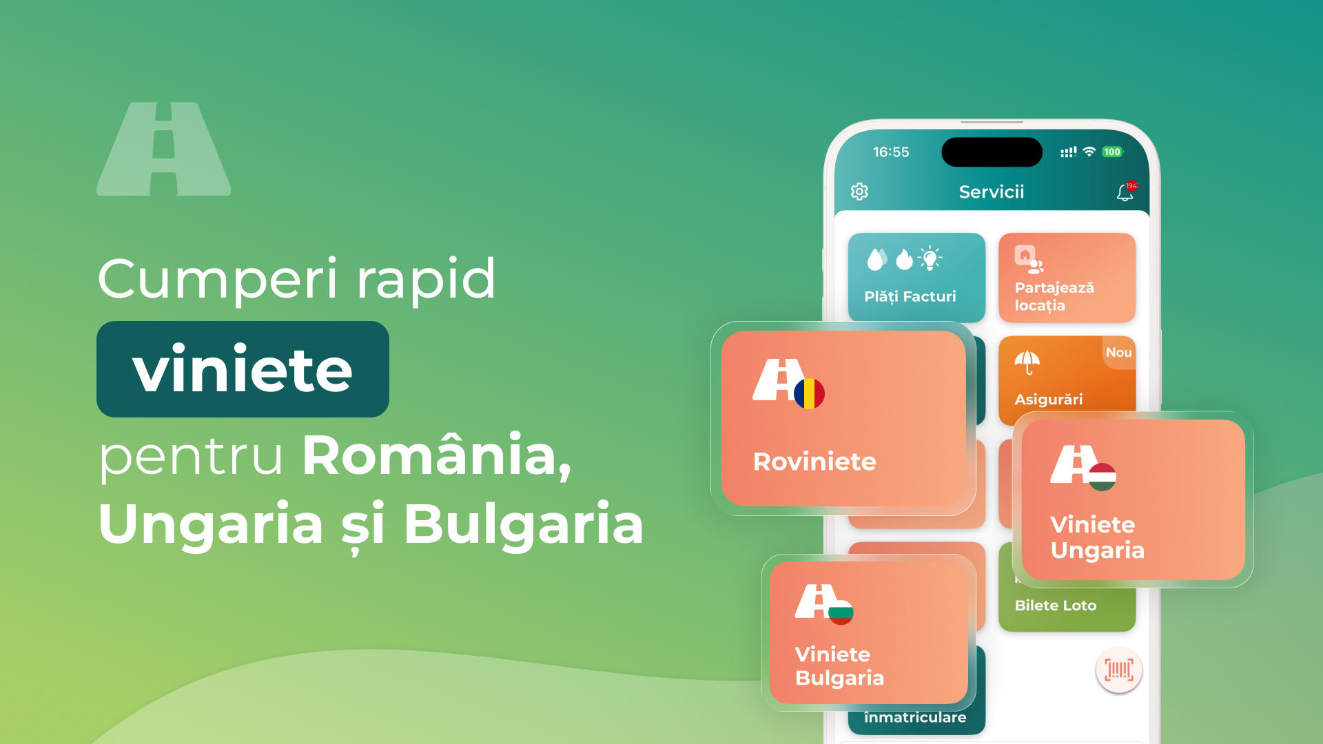 Poți cumpăra rovinieta, vinieta de Ungaria sau de Bulgaria direct din aplicația Un-Doi, folosind doar telefonul mobil.