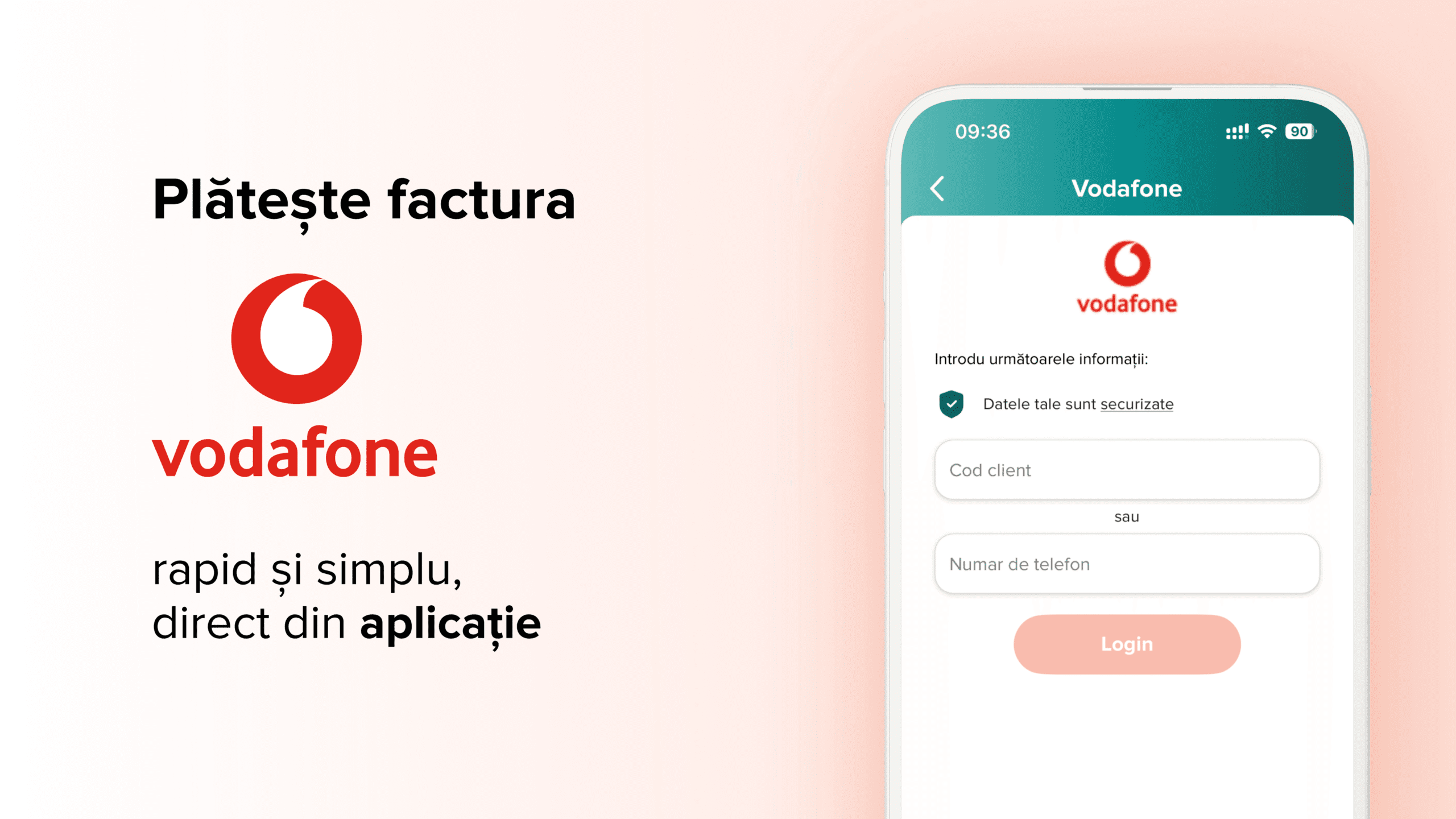 Cu aplicația un-doi, plătești factura Vodafone rapid și sigur. Adaugă furnizorul o singură dată și plătește în fiecare lună fără să scanezi factura!
