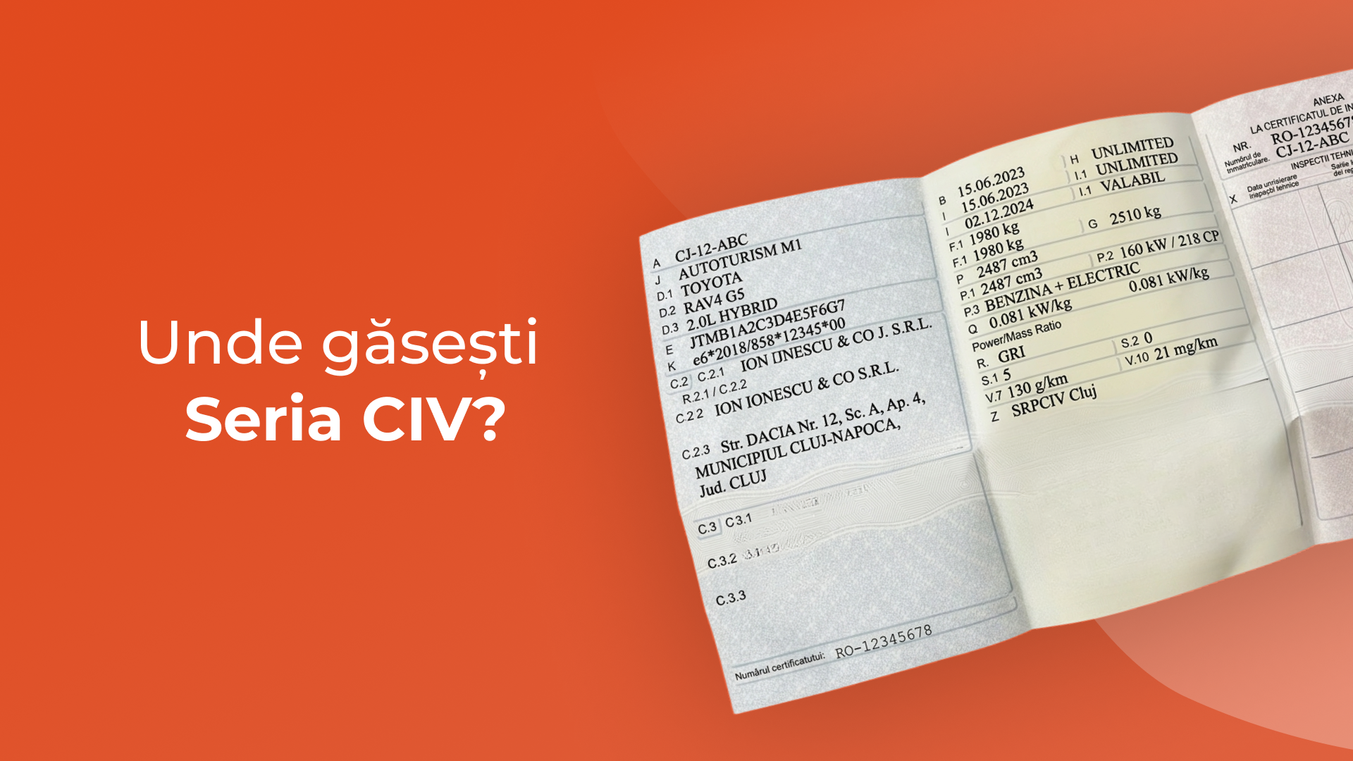 Dacă seria de șasiu (VIN) identifică mașina fizică, seria CIV identifică documentul său principal, cel care atestă că vehiculul îndeplinește condițiile tehnice de circulație. Vei avea nevoie de această serie pentru: