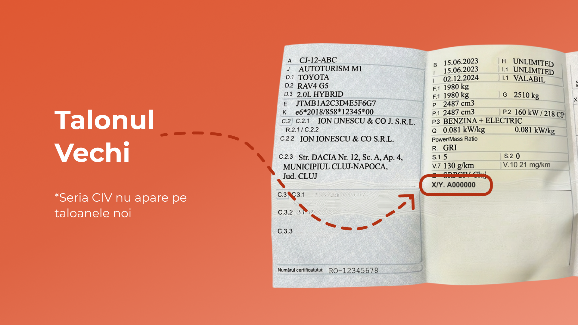 – Dacă ai talon nou, seria CIV nu apare menționată. În acest caz, singura sursă sigură pentru a afla seria este Cartea de Identitate a Vehiculului.